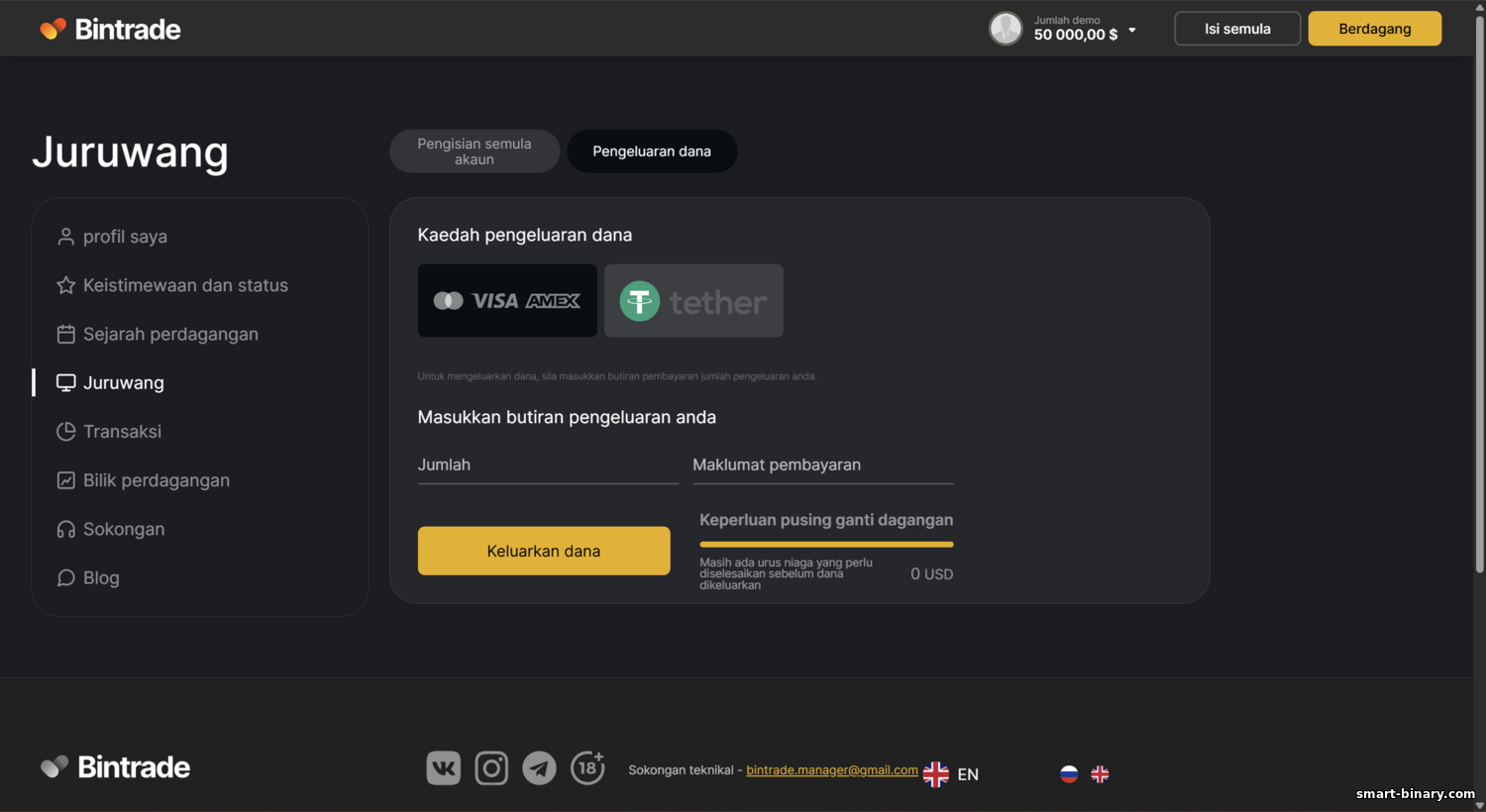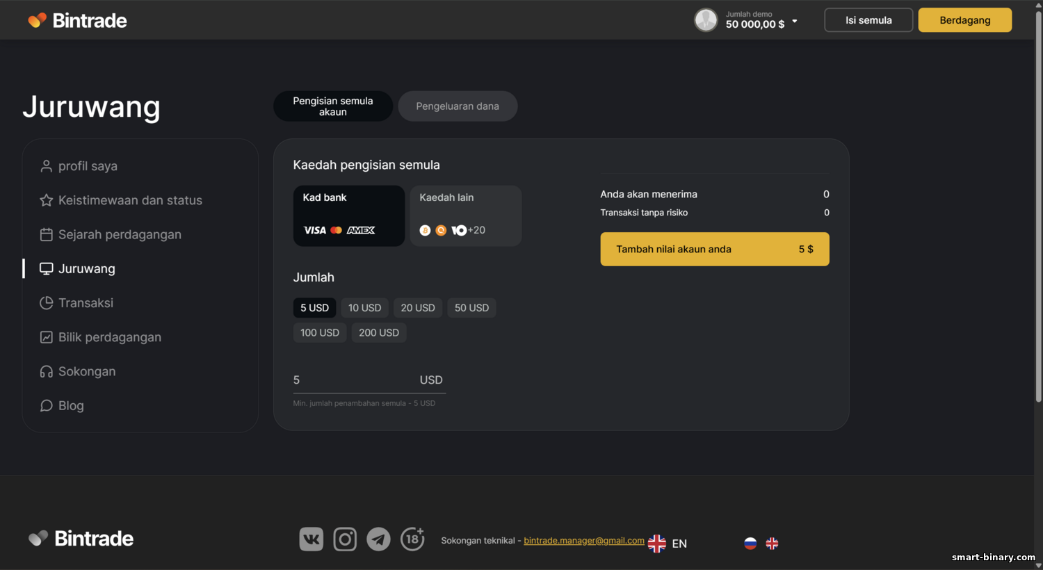 - Sokongan BinTrade: kualiti dan kaedah hubungan