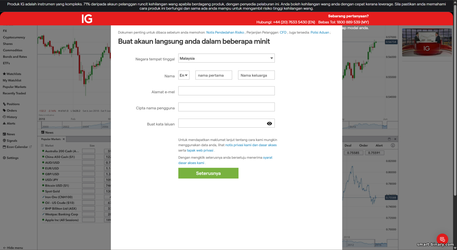 - Had negara. Walaupun capaian global, IG tidak tersedia di semua tempat. Sebagai contoh, klien AS hanya boleh menggunakan IG untuk forex, kerana CFD dilarang di sana.