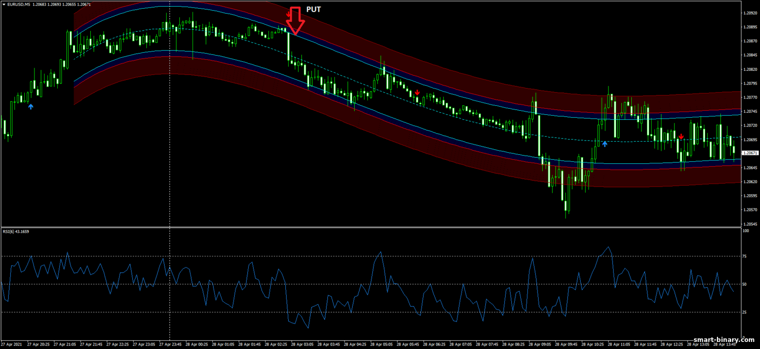 - Harga pada penunjuk RSI telah menyentuh zon terlebih beli (syarat pilihan)