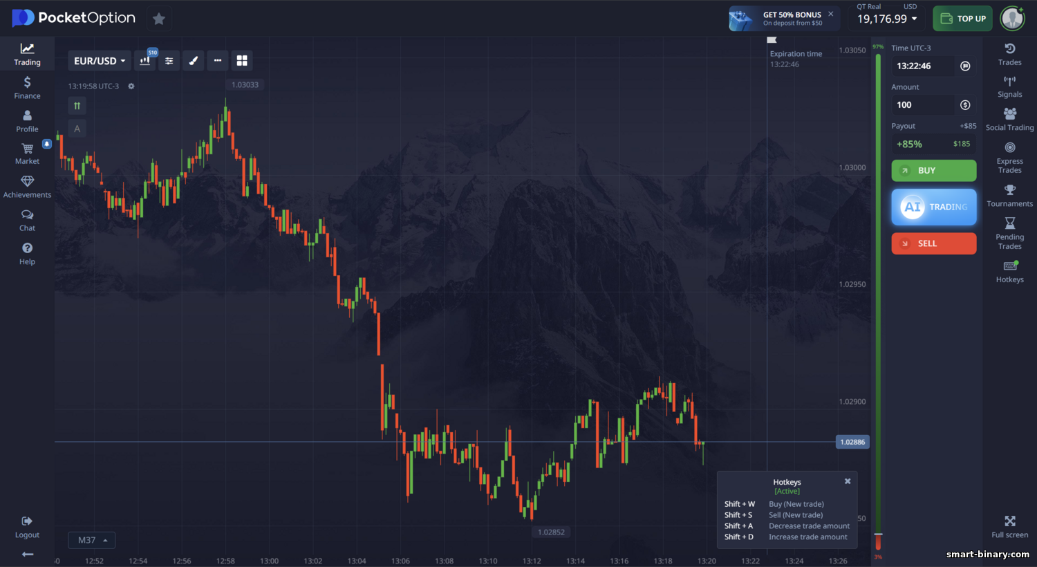 - Ciri unik apa yang ditawarkan Pocket Option? — Platform ini menyokong dagangan sosial sepenuhnya: pemula boleh mengikuti pedagang berpengalaman dan menyalin dagangan mereka dengan satu klik. Terdapat juga kejohanan dagangan berkala di mana peserta bersaing berdasarkan keuntungan dan boleh memenangi hadiah bernilai. Klien baharu boleh menerima bonus 50% pada deposit pertama—contohnya, deposit $100 dan dapat tambahan $50 dana bonus. Sudah tentu, bonus datang dengan syarat pusing ganti, tetapi ia boleh menambah modal permulaan.